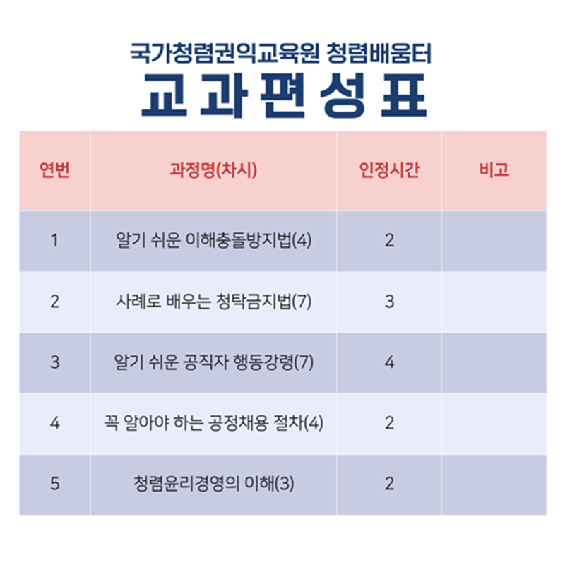 (공무원은 국민권익위원회 국가청렴권익교육원 나라배움터 (acti.nhi.go.kr) 를 통해 수강하여 주시기 바랍니다.)